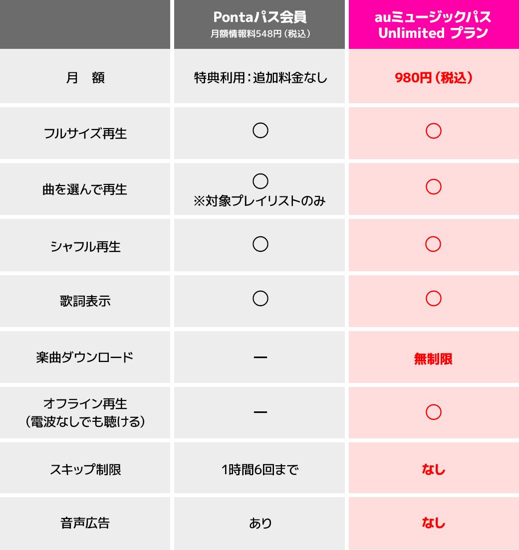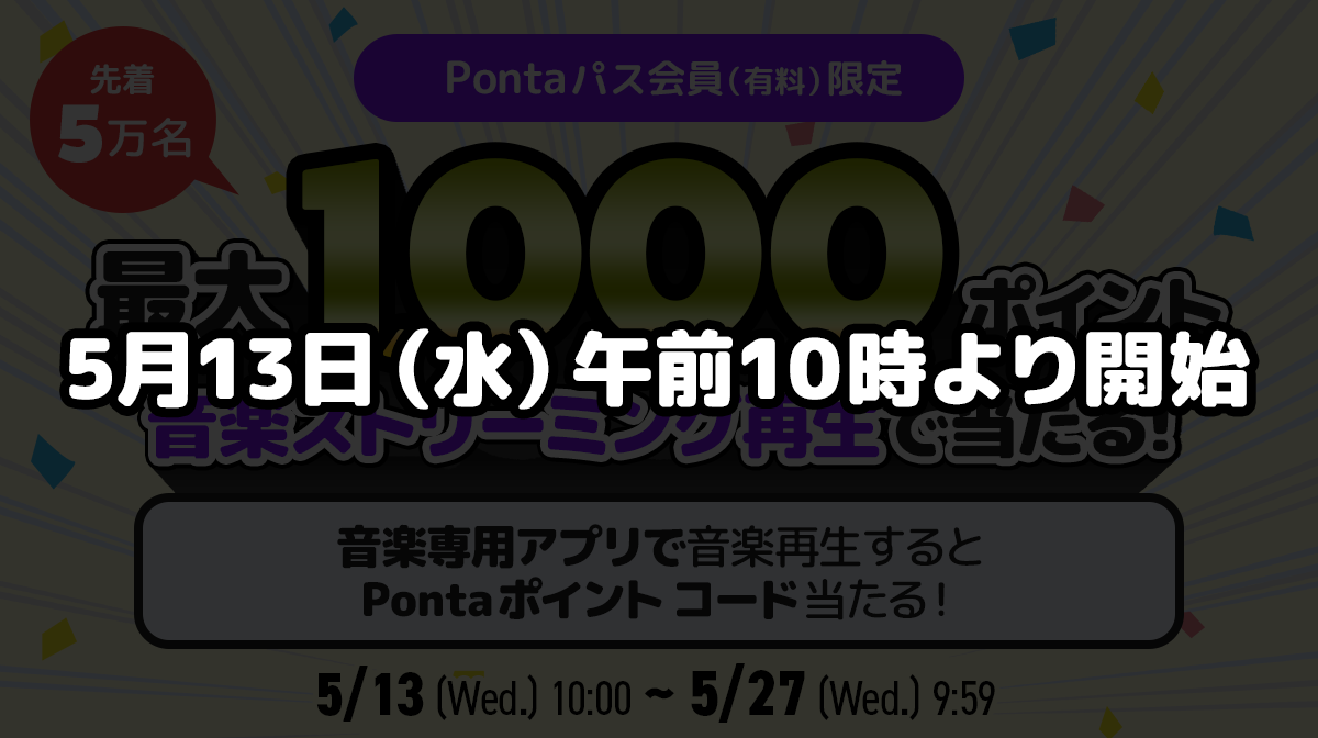 本キャンペーンはauミュージックパスアプリでの再生のみが対象となります。Pontaパスアプリでの音楽再生は対象外です。